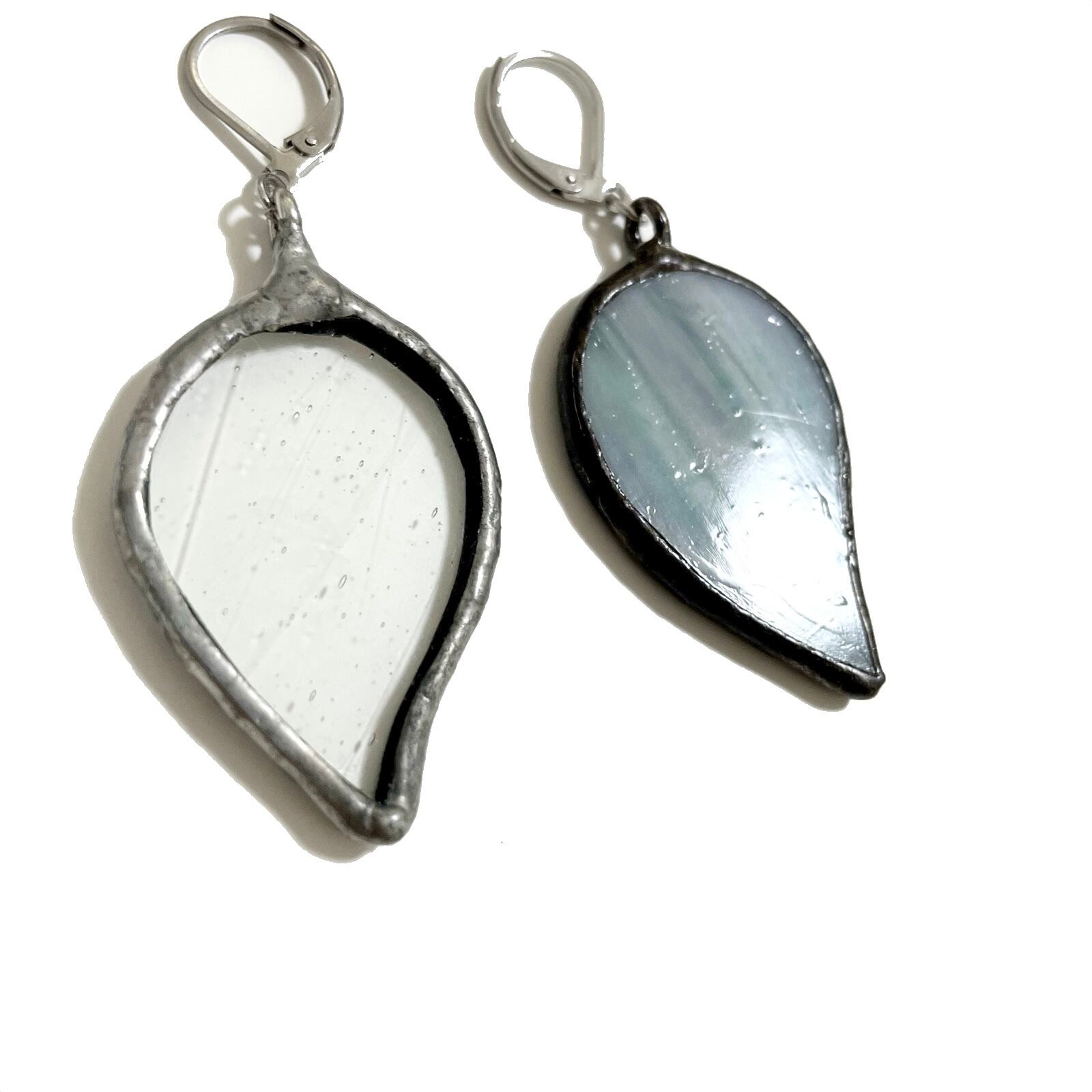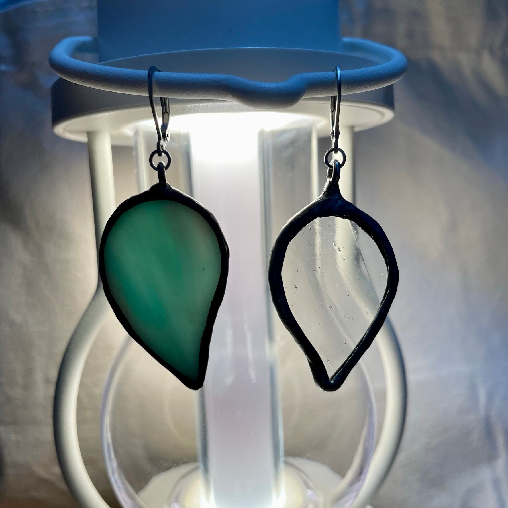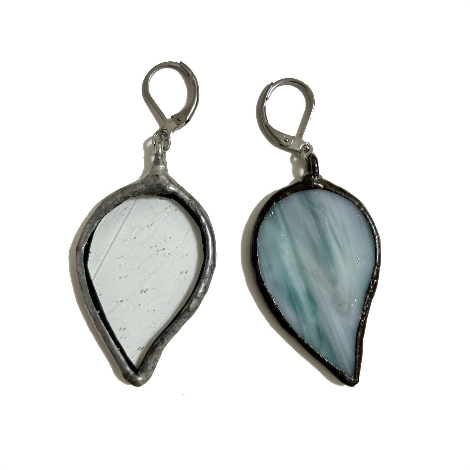 おばけ ミント&ホワイト / サージカルステンレス ピアス ステンドグラスアクセサリー ヴィンテージガラス フレンチフック